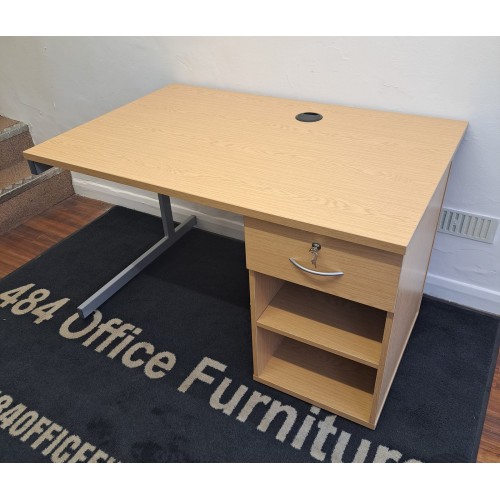Light oak 1200mm by 800mm straight desk with comb fixed pedestals
