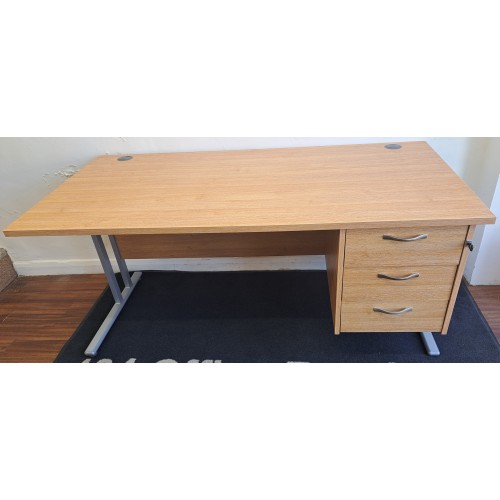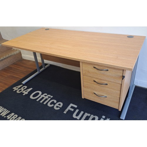 Limed Oak 1600mm by 800mm straight desks with fixed pedestals