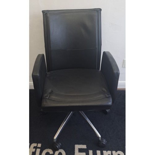 Black leather swivel meeting/breakout/operator chairs