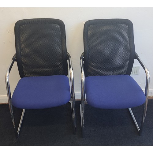 Pair of blue & black mesh chrome meeting chairs with arms