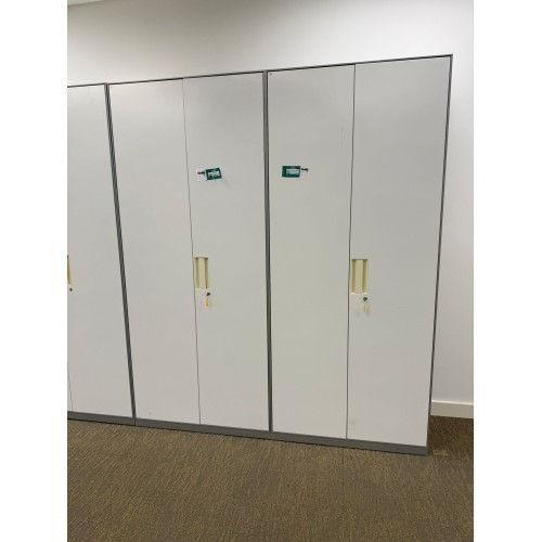 Grey & white 2100mm high 1000mm wide metal double door units From Evans Trading, the Specialist in Recycled Office Furniture